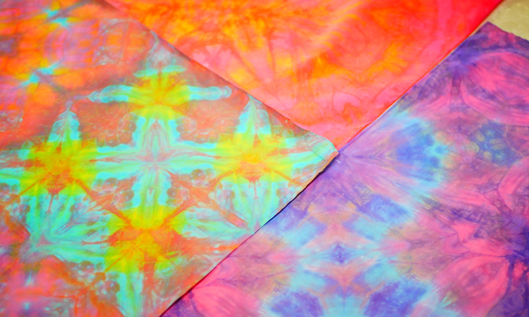 この技術の特徴の一つは、地熱蒸気の熱と成分を利用して驚くほど多様な色合いを生み出すことです。高温の蒸気を使って染料が布に浸透する際、蒸気中の微量の硫化水素が染料と混ざり、色が失われることがあります。この染色と脱色という対照的なプロセスが同時に進行することで、幻想的なパターンが生まれるのです。